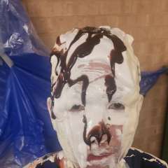 GetPiedUp was surprised by messypup97 with a big sloppy cream pie to the face
