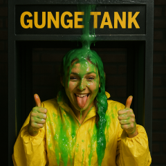 "Exciting premise, but gunge a bit too runny for me." A very exciting concept--love the idea of Chloe being restrained while gunged--however, personally I thought the gunge was a bit too runny on this occasion, more akin to melted ice cream--the colour wasn't particularly exciting either. I did enjoy the rubbing, feeling that occurs at the end of the video--but just wish this had been done with a thicker, more vibrant gunge. PS: I would love to see this scene attempted again, but perhaps Chloe can wear a zip-front PVC or leather-look black catsuit for the occasion? | |